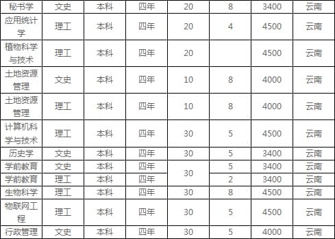 昭通学院2016年招生专业人数及收费标准一览表(本科)